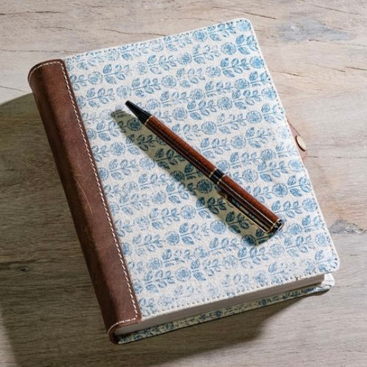 Blue Floral Leather Journal- Large