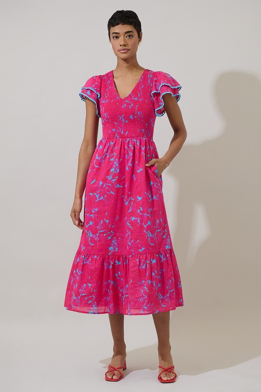 Pink Tier Pompom Dress