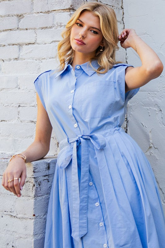 Periwinkle Button Midi Dress