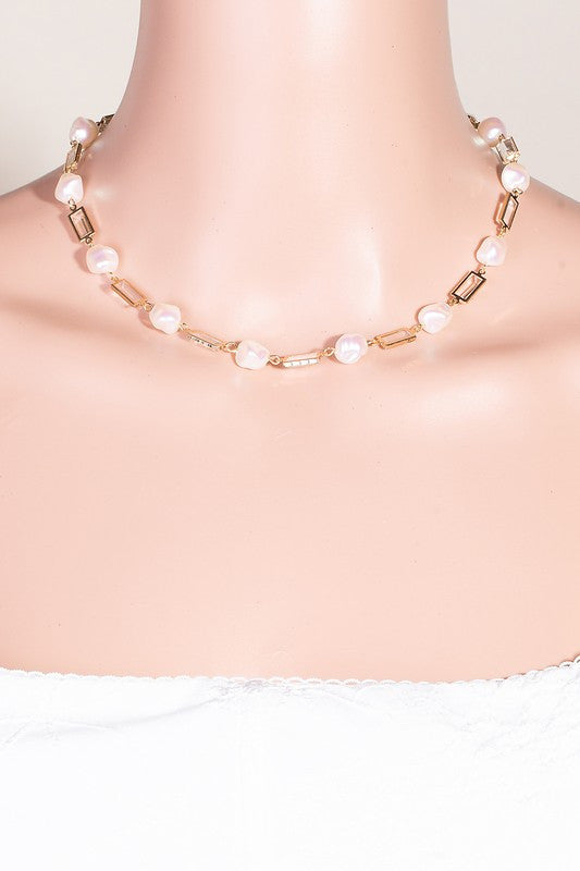 Pearl & Rectangle Link Necklace