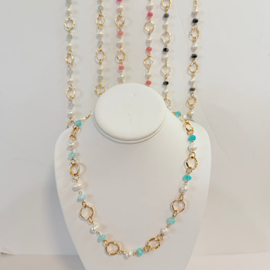 Long Stone and Gold Necklace