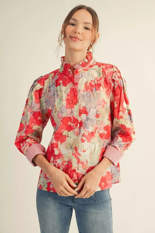 Floral Contrast Sleeve Blouse