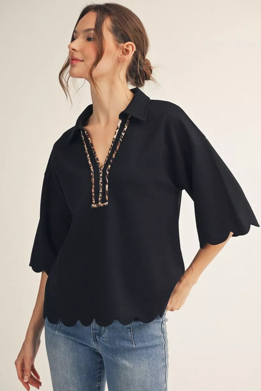 Scallop Leopard Trim Top
