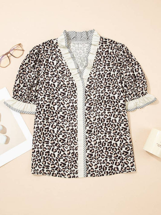 Leopard Blouse with Trim