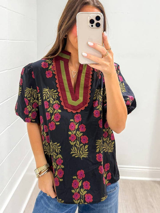 Floral Contrast Neck Top