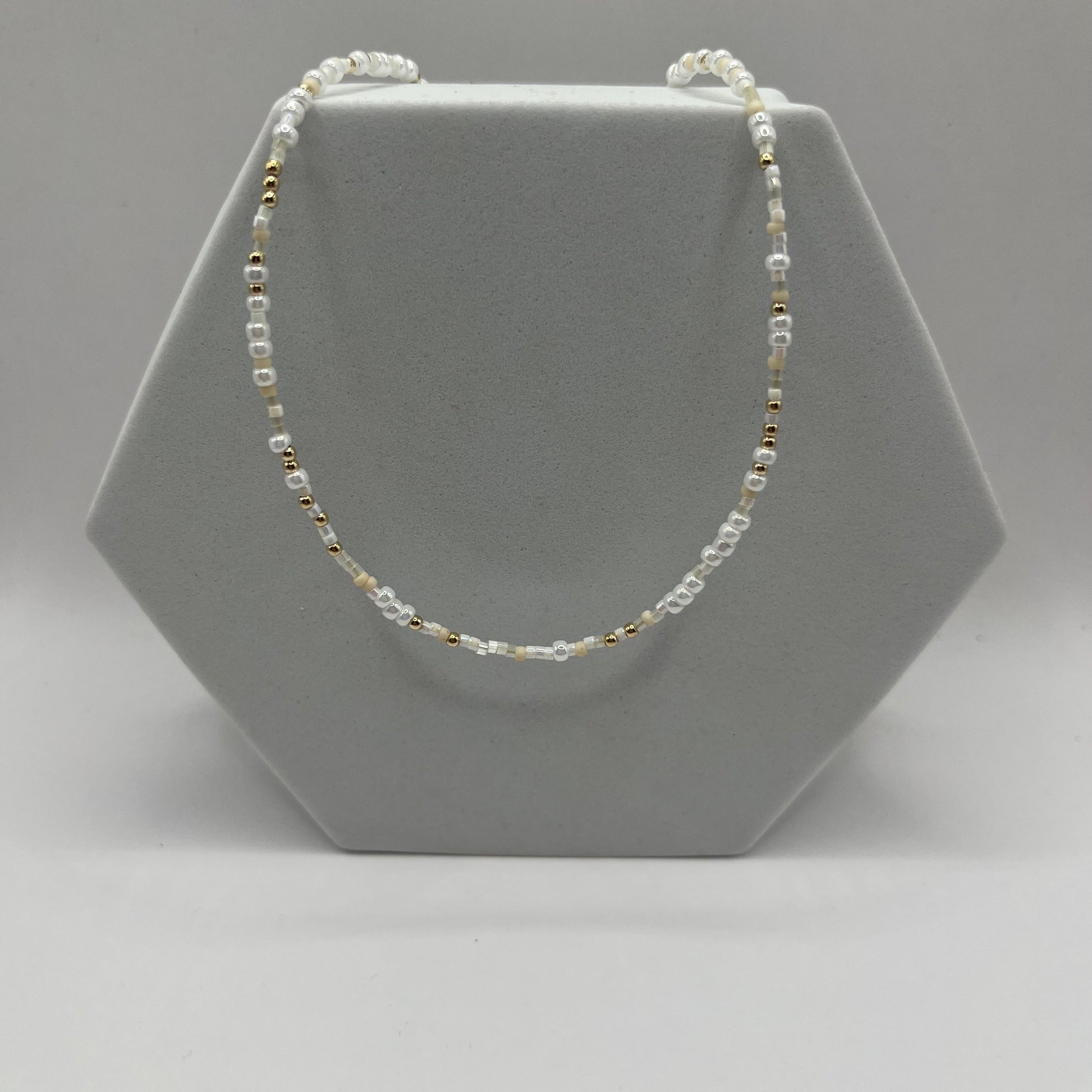 - Made with various colors of randomly mixed 2mm seed beads and 2mm 14k gold-filled beads
