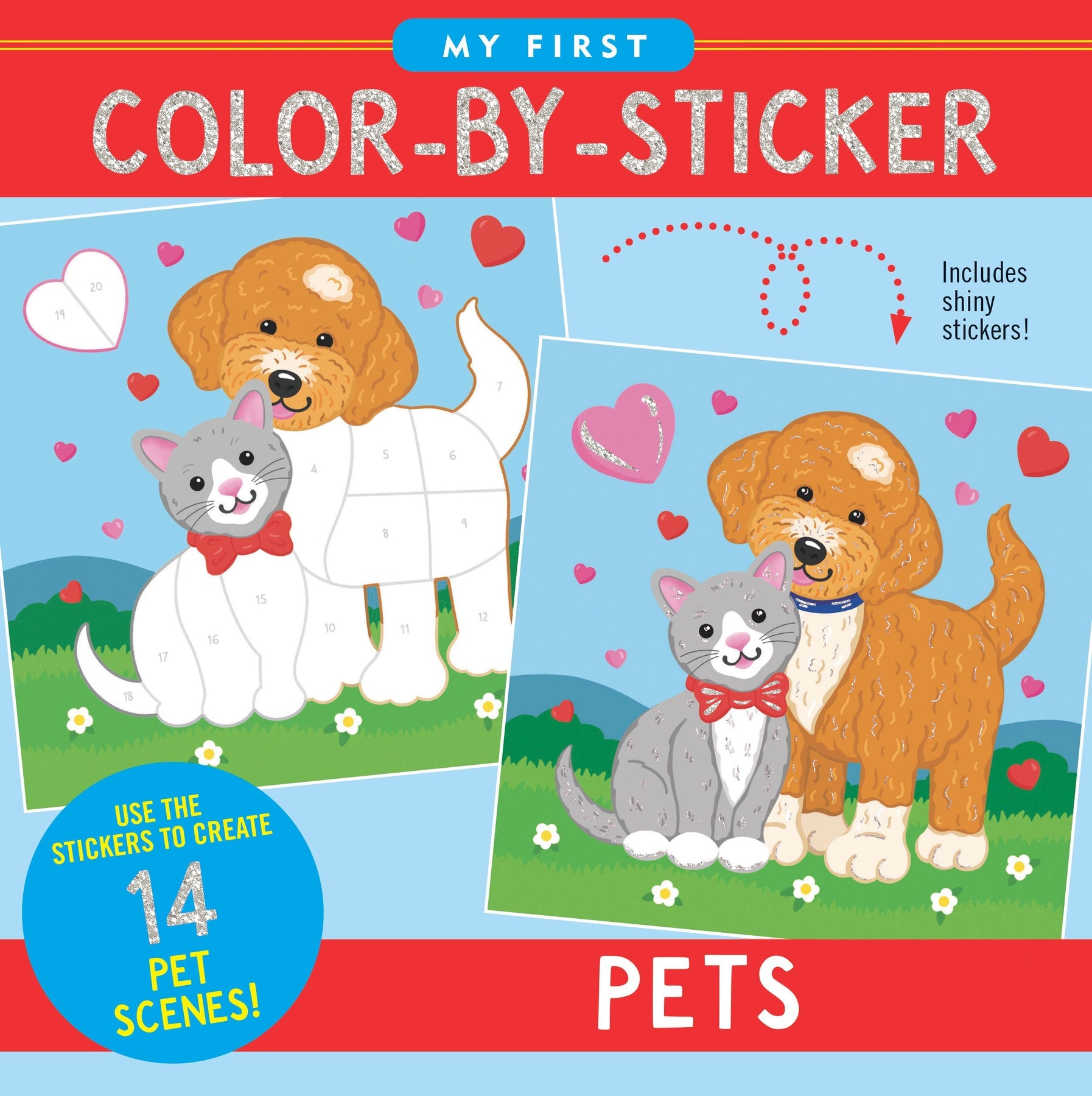 - Sticker book comes with 14 pet-themed scenes to ''color'' with the stickers provided.