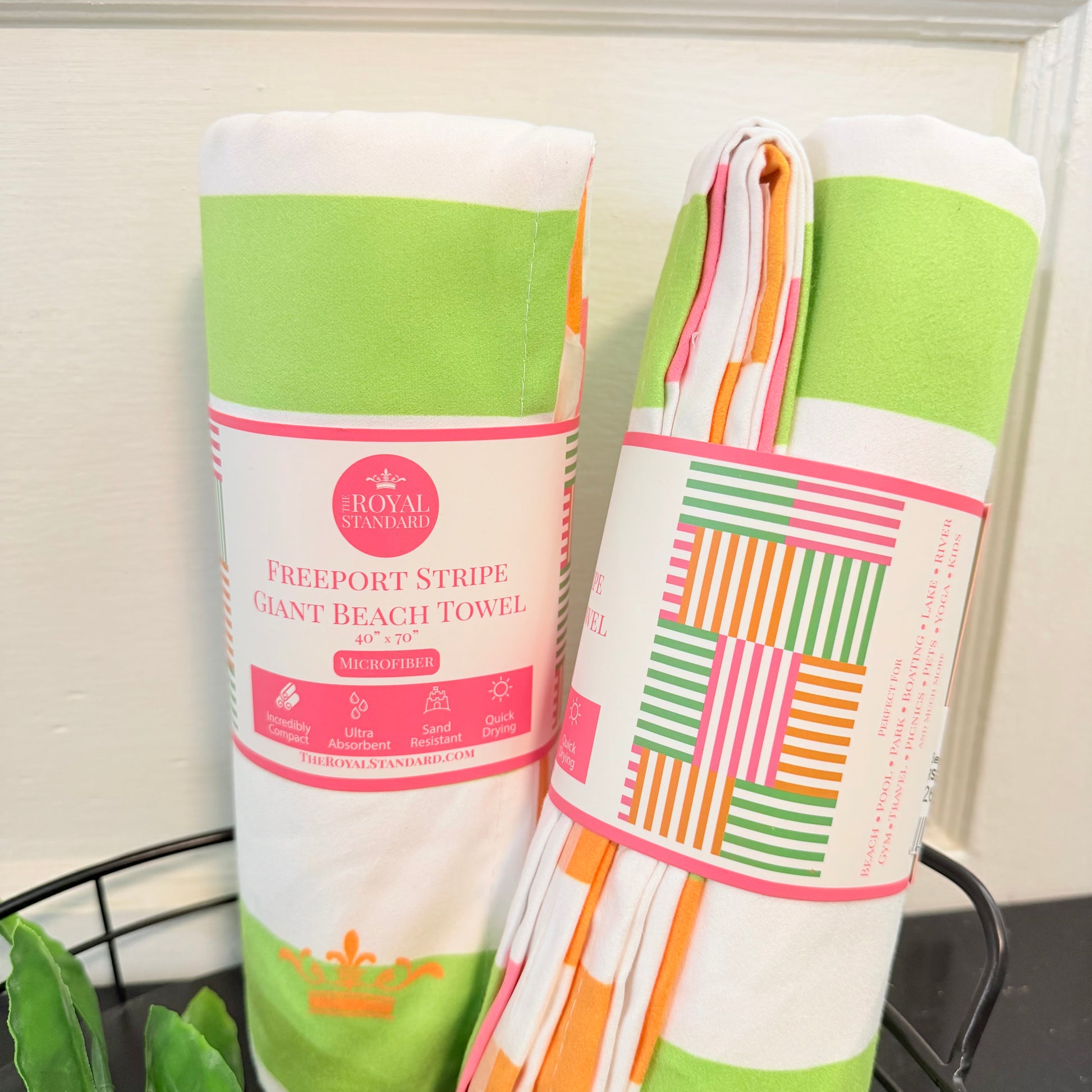 Enjoy summer days with the Freeport Stripe Giant Beach Towel. Its vibrant multi-color stripes make it perfect for beach trips, poolside lounging, or backyard fun.
