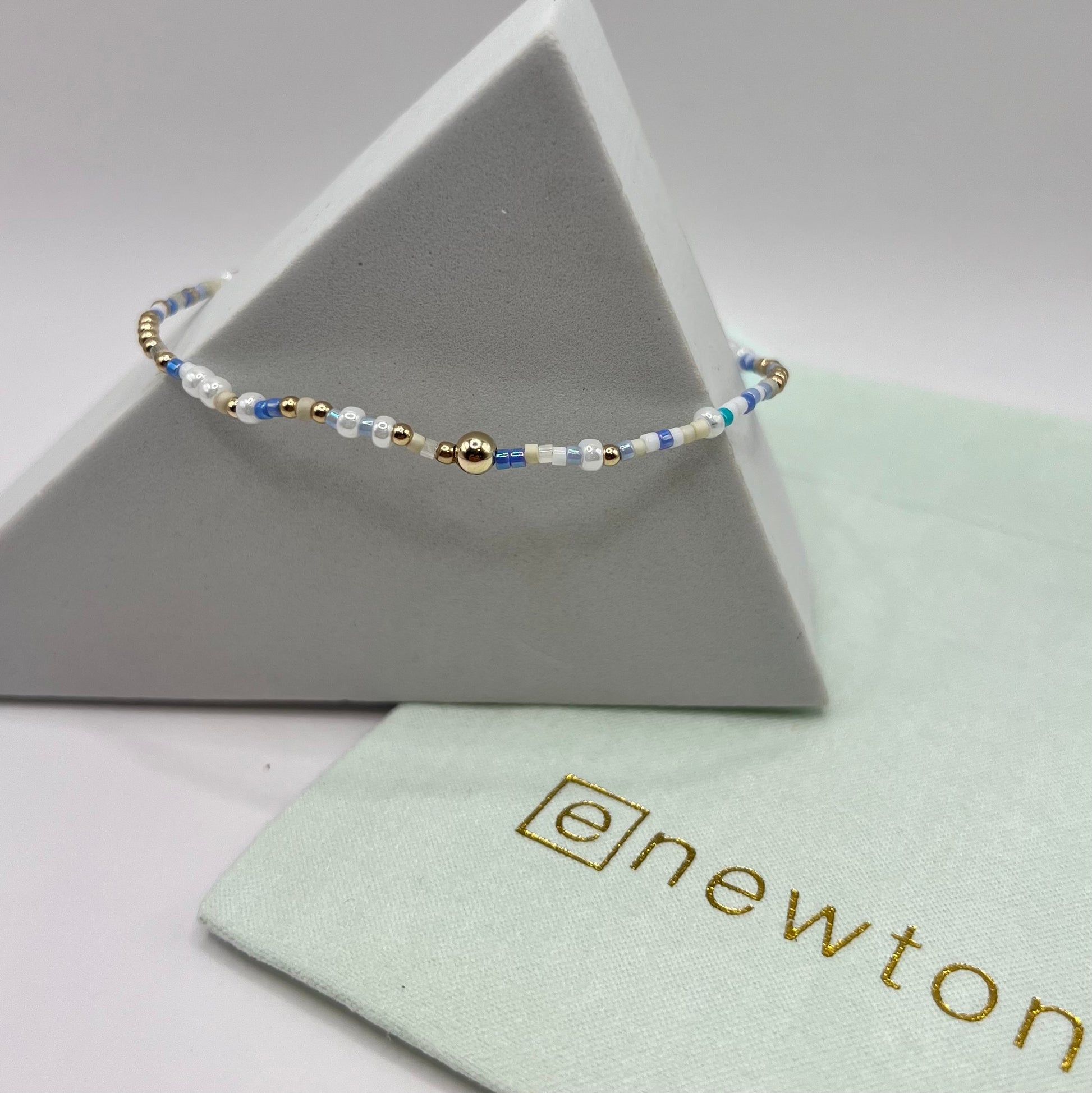 Hand beaded on high performance elastic for a slight stretch to easily roll on and off your wrist