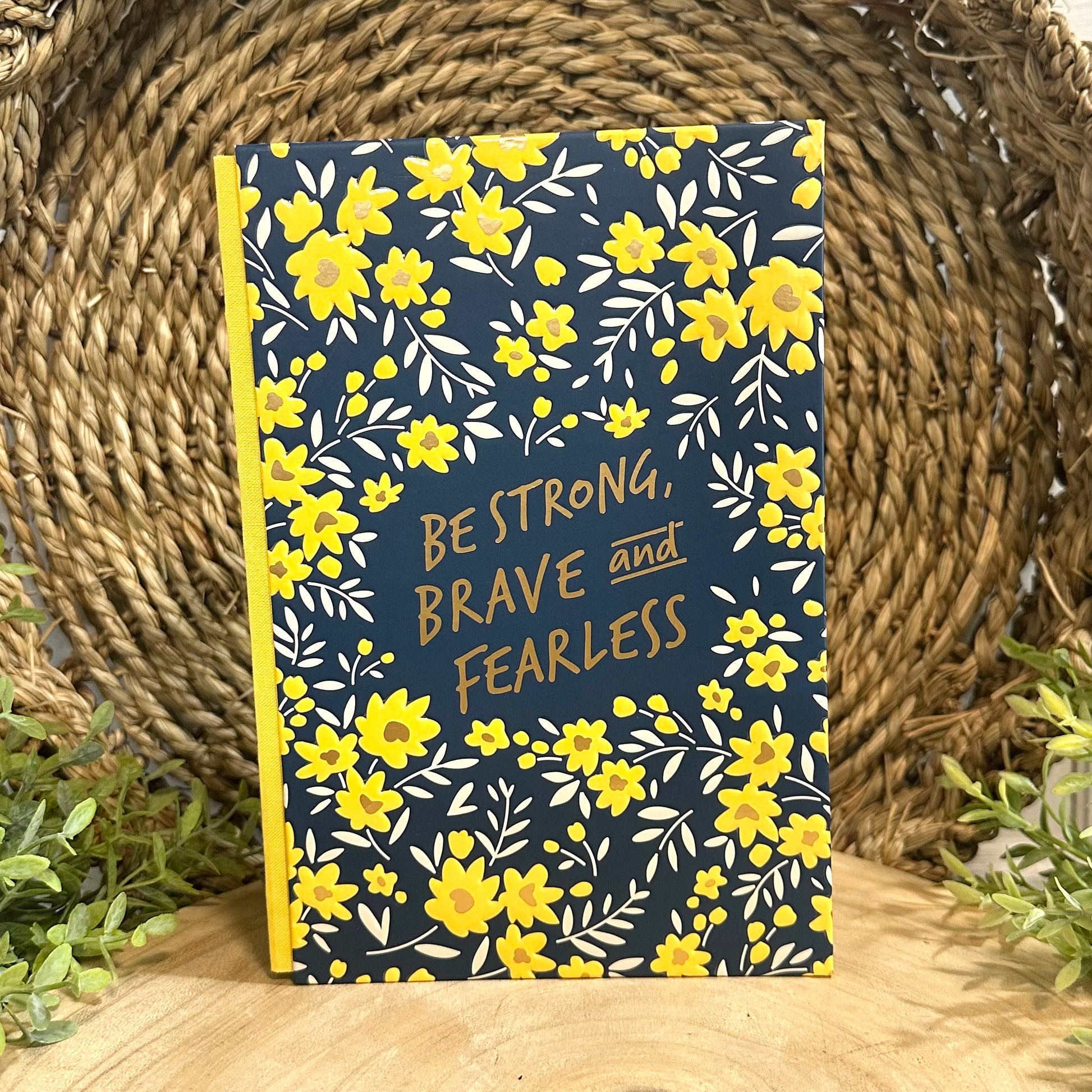 Hardcover Journal- Be Strong, Brave and Fearless Notebook in blue and yellow