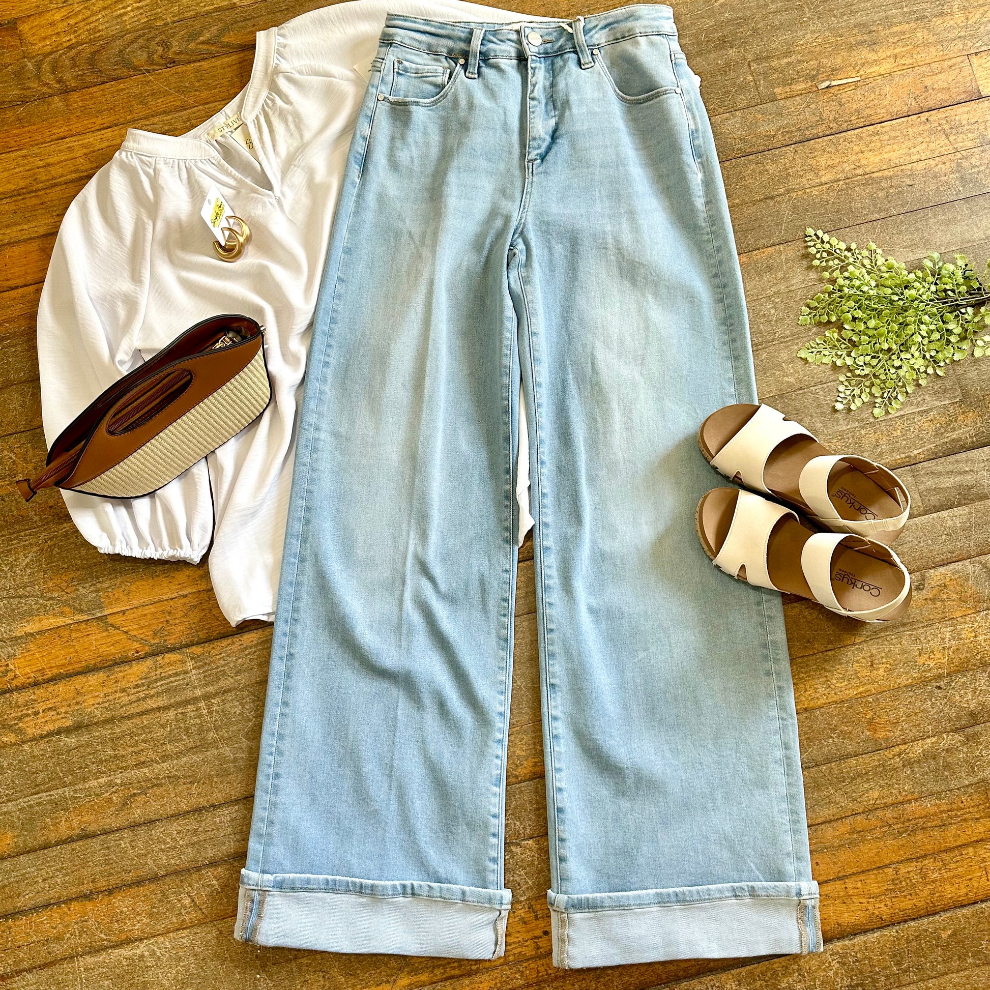 TUMMY CONTROL HIGH RISE LONG INSEAM WIDE LEG WITH CUFFED JEANS