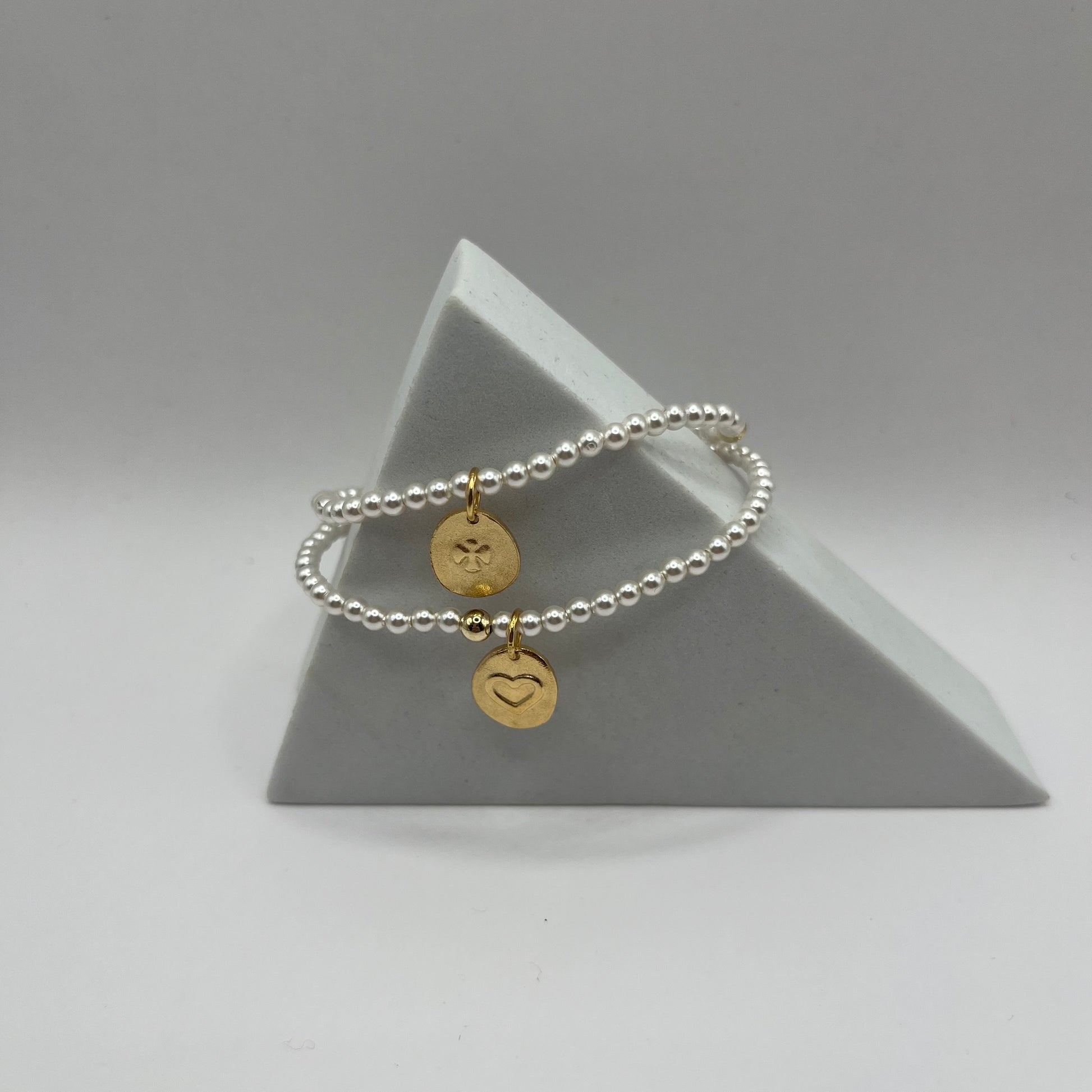 classic pearl 3mm bead bracelet - inspire love small gold charm