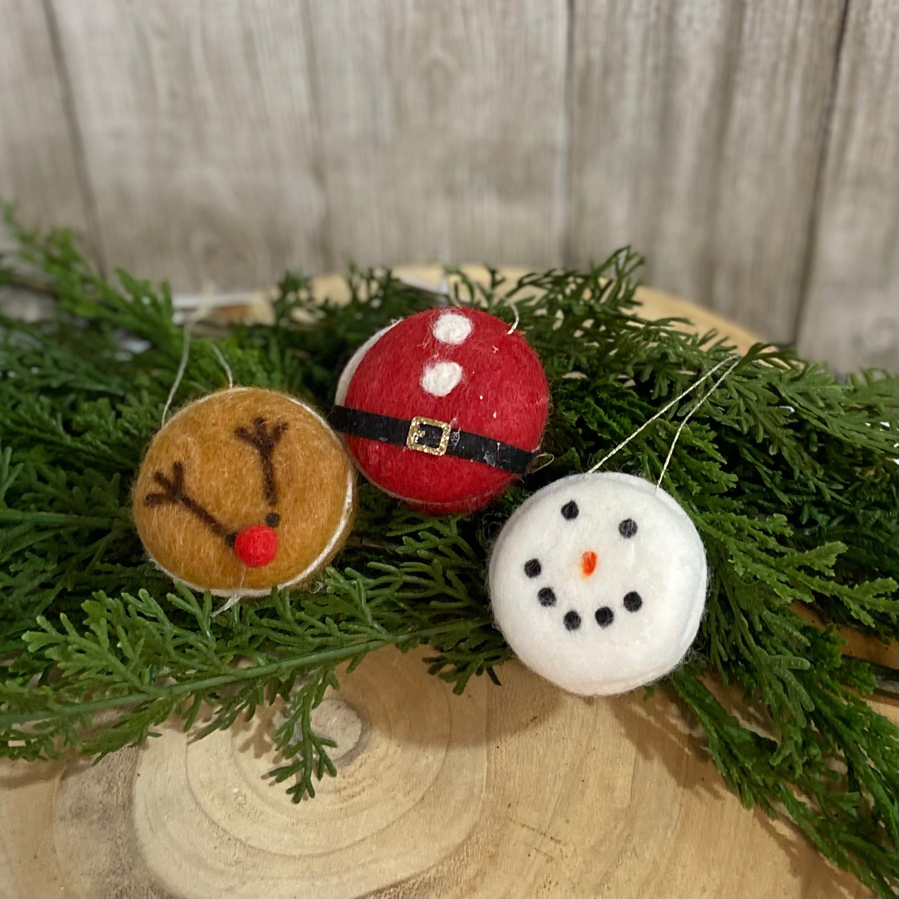 WOOL MACAROON ORNAMENT, SANTA, SNOWMAN OR REINDEER